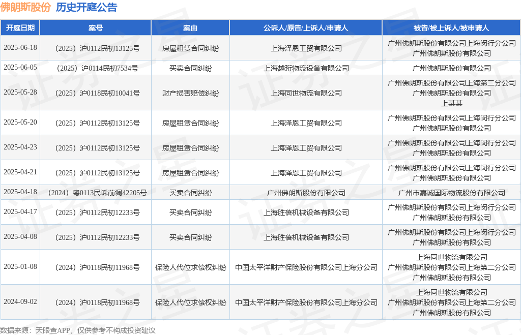 本站消息,根据天眼查APP显示配资大全配资大全,近日公布了一则广州佛朗斯股份有限公司作为被告/被上诉人的开庭公告,详细内容如下: