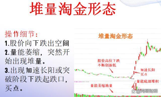 堆量淘金形态是指股价在下跌行情中不断创新低,并且伴随量能的持续萎缩,在大多数人信心涣散时,突然出现量能的底部堆积承接;
