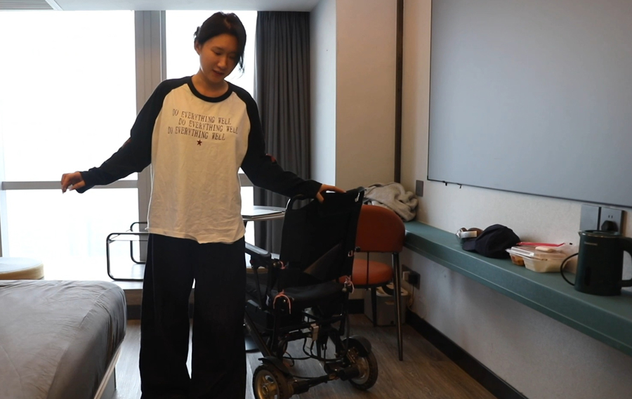 此后的8个月,小刘以志愿者身份加入蔡磊团队合作的药物临床试验,开始了医院与出租屋两点一线的生活。这两年来,她的病情稳定,未再发展。如今,她已可以借助支撑物站立,并完成擦地、换床单等简单的日常活动。尽管出行仍需轮椅,但小刘已能兼职从事修图、剪视频等工作,甚至还获得了一些收入。